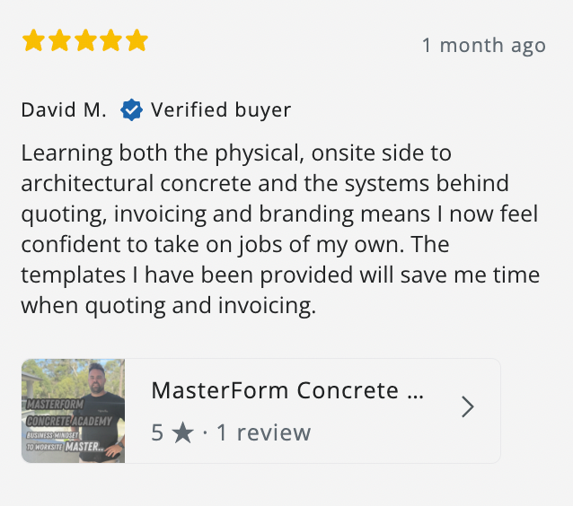 Learn how to build architectural concrete masterpieces, quote like a boss, and walk away with real profit on every job.